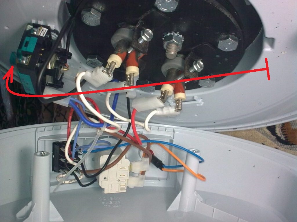 Найдите тепловую защиту — она часто имеет красную или черную кнопку.