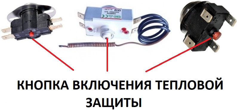 «Термозащита с кнопкой» — многоразовая, восстанавливается нажатием. Данный вид обычно устанавливается на все водонагреватели с механической регулировкой температуры.