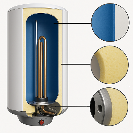 ✔ Бойлеры с теплоизоляцией из полиуретана экономят электричество.